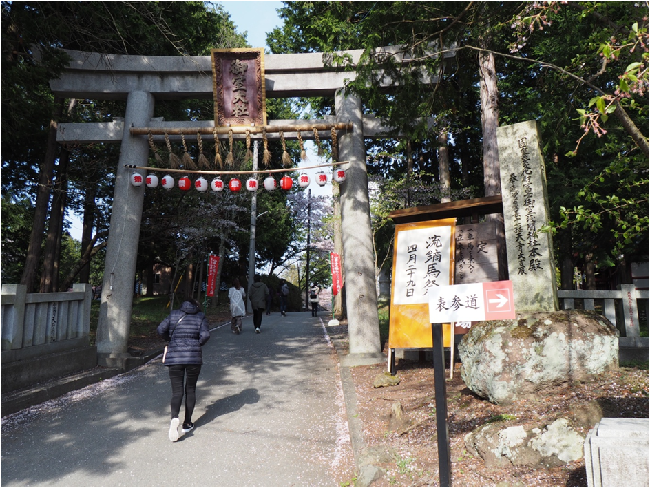 Fuji Omuro-Sengen Shrine is famous for yabusame, horseback archery. Yabusame was first performed here in 940 A.D. to celebrate the successful suppression of a rebellion. These days a yabusame festival is held every year during Golden Week, on April 29th. Yabusame is exciting to watch, with riders in traditional Japanese costumes galloping along a track. They control their horses with their knees, and fire their arrows as they pass the targets.
